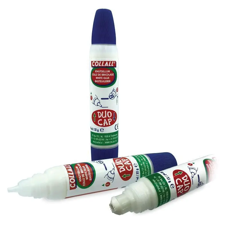Fast-drying water-based white glue with double dispenser suitable for extensive sueprficies or detailed strokes.