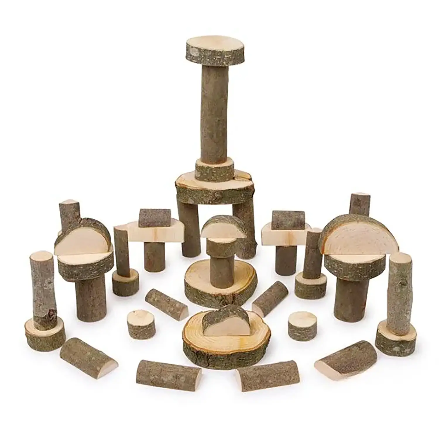 Natural Building Blocks Set - Creative Play with Wooden Elements Discover the Natural Building Blocks Set, perfect for stimulating creativity and motor development in children. Made of wood with bark, these blocks offer a unique tactile experience for construction activities and symbolic play.