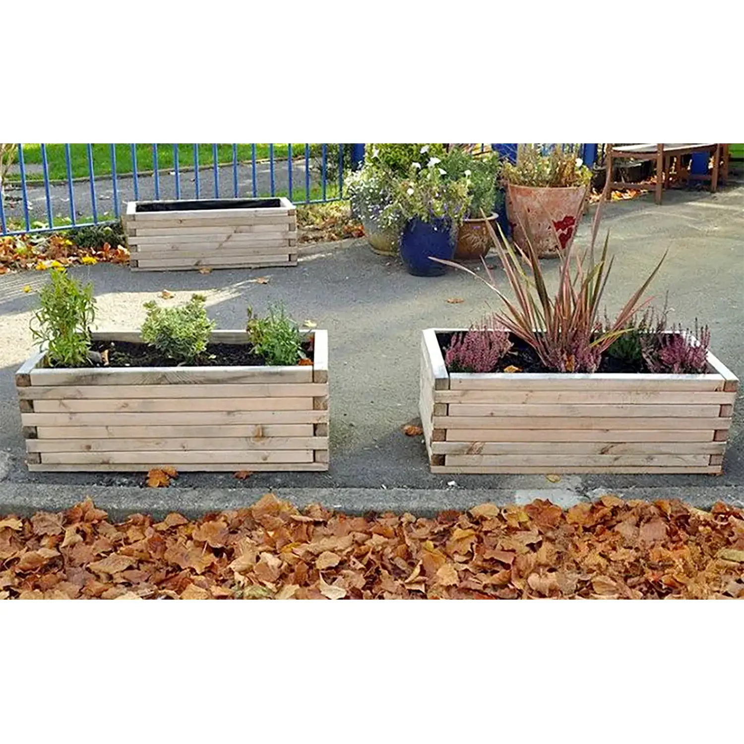 Design Robusto e Spazioso per Progetti di Giardinaggio Ogni fioriera, di dimensioni L90 x P40 x H30 cm, offre spazio sufficiente per piantare fiori, erbe aromatiche o piccole verdure. Realizzate con materiali resistenti agli agenti atmosferici, garantiscono durata e stabilità anche nelle aree gioco più attive.
