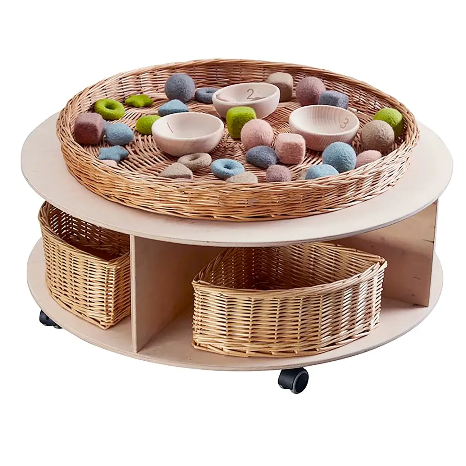 Mobile e Adattabile Grazie alla struttura mobile, può essere facilmente spostato dove necessario, offrendo flessibilità per diverse attività educative. Le dimensioni (H29 x Ø75 cm) lo rendono compatto ma spazioso per riporre materiali e strumenti.