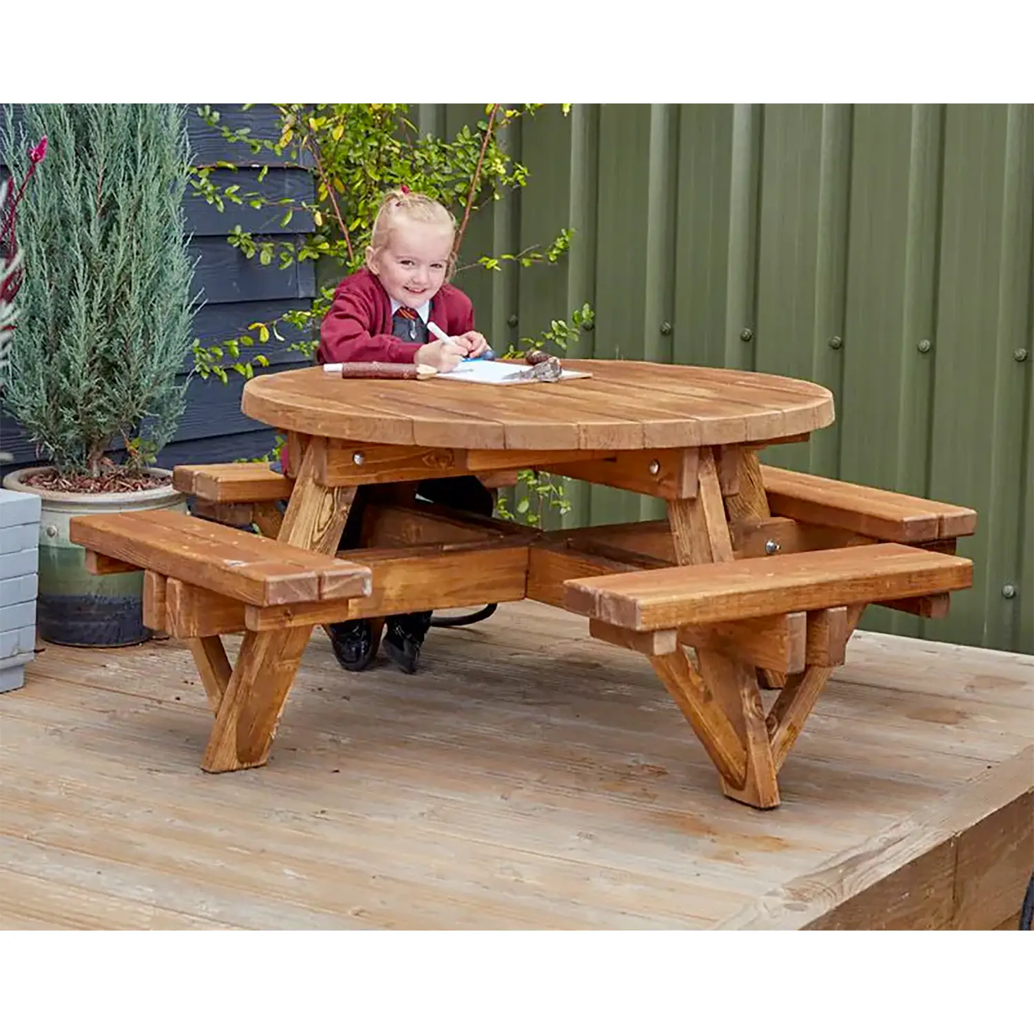 Tavolo Da Picnic Rotondo Con Panche Il Tavolo Da Picnic Rotondo per 8 è la soluzione perfetta per favorire la socializzazione e il gioco di gruppo! Ideale per scuole, asili e aree gioco, ospita fino a otto bambini, creando uno spazio ideale per attività creative, progetti di gruppo e pause merenda all’aperto.