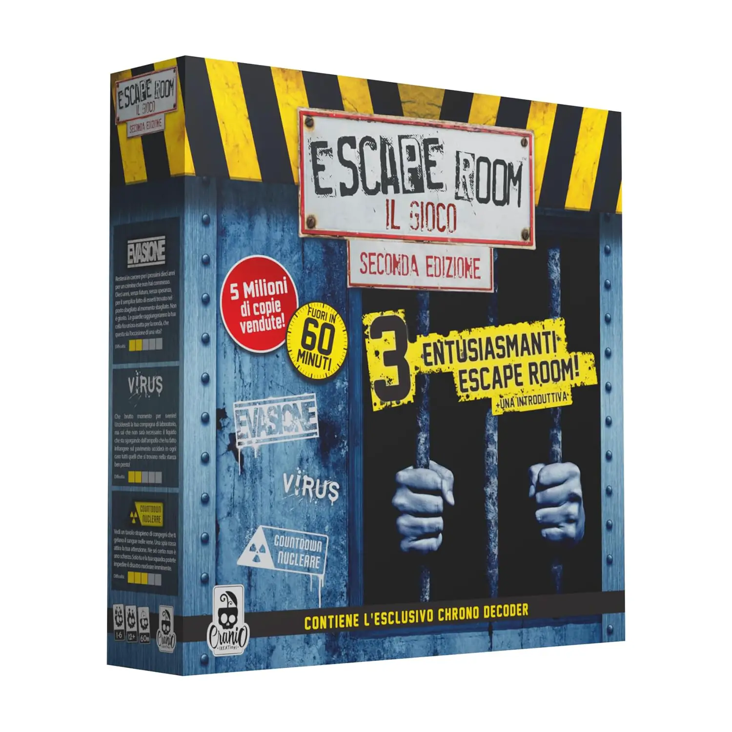 Quattro avventure incluse La scatola contiene 4 avventure complete: Lo Scantinato (introduttiva), Evasione, Virus e Countdown Nucleare. Ogni scenario offre ambientazioni diverse, enigmi originali e livelli di difficoltà progressivi per un’elevata rigiocabilità.
