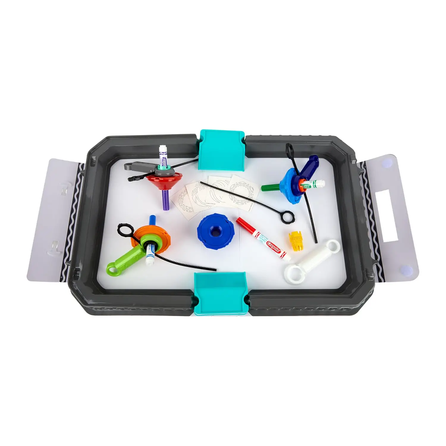 Set completo per giocare subito include 1 arena, 4 trottole ColourWhirls complete, 4 pennarelli Crayola, 2 rampe e tutti gli accessori necessari per iniziare la sfida.