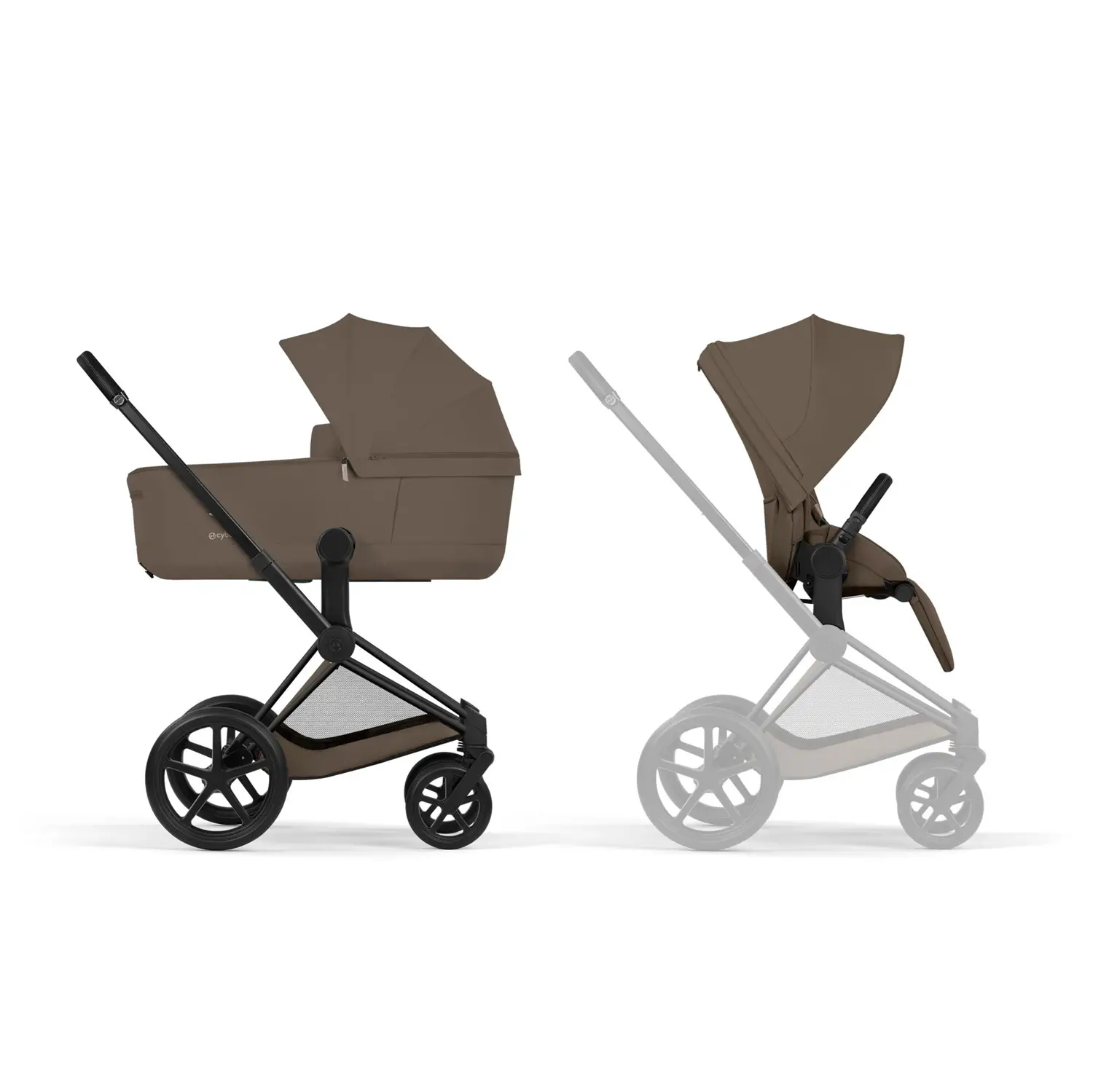 Priam Comfort Coconut Brown 2in1 Con Navicella Richiudibile-Passeggino con Telaio Matt Black