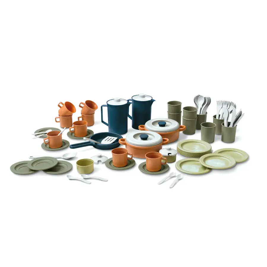 - ✅ Complete set of 79 BIOplastic tableware: plates, cutlery, glasses, casseroles and role-playing accessories.