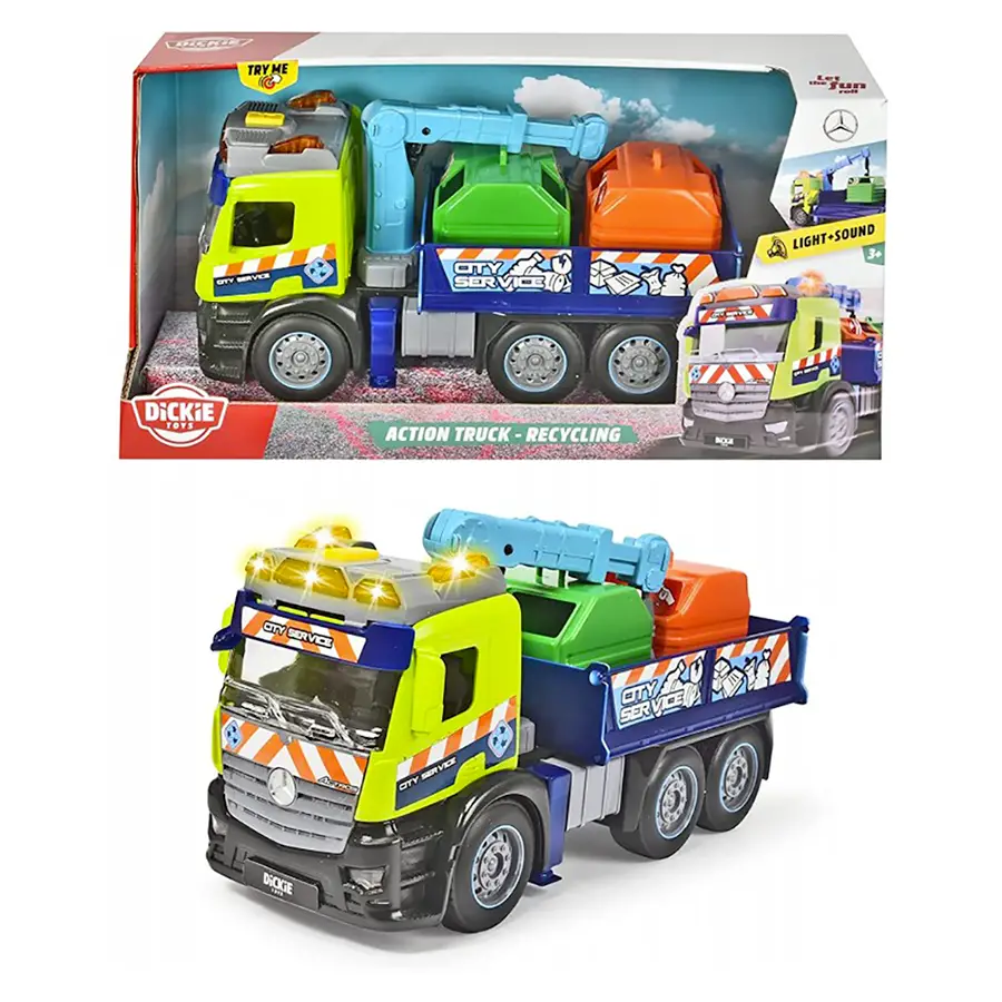 Get closer to the world of waste management and ecology with the Dickie Toys Action Truck eco-friendly truck! Inspired by the Mercedes-Benz Actros model, this 26-cm truck has authentic and detailed features, allowing children to explore and appreciate the importance of caring for the environment through play.