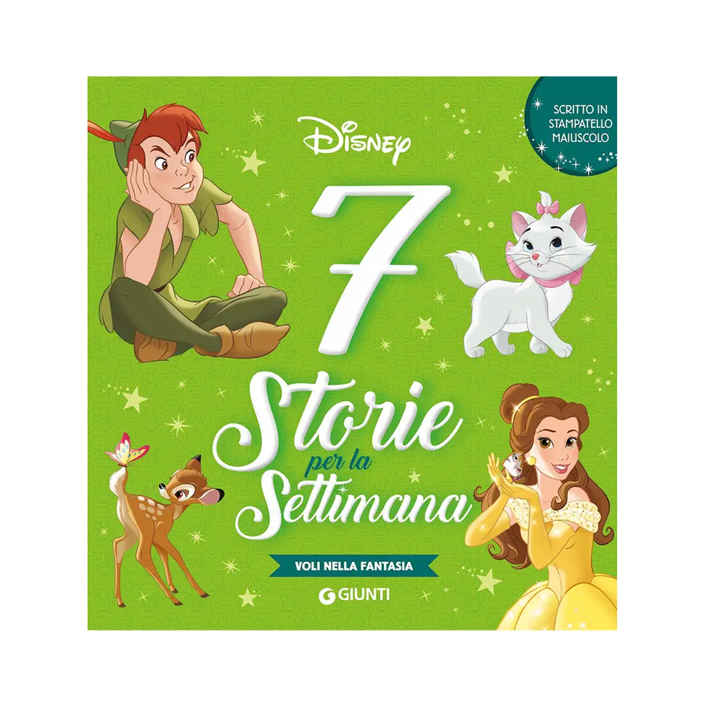 Testi semplici e brevi per 7 storie avventurose e fantastiche, dedicate ai personaggi principali dei classici film Disney. Una storia al giorno, iniziando con Peter Pan, con i cuccioli de La Carica dei 101, con i simpaticissimi Aristogatti, poi Bambi, per finire con la magica storia di La Bella e la bestia seguita da Aladino e dallo straordinario racconto de Il Re Leone. Storie che parlano di desideri, sogni e fantasia - splendidamente illustrate a colori dai migliori artisti Disney - adatte alle letture prima della nanna e alle prime esperienze di lettura autonoma. Età di lettura: da 5 anni.