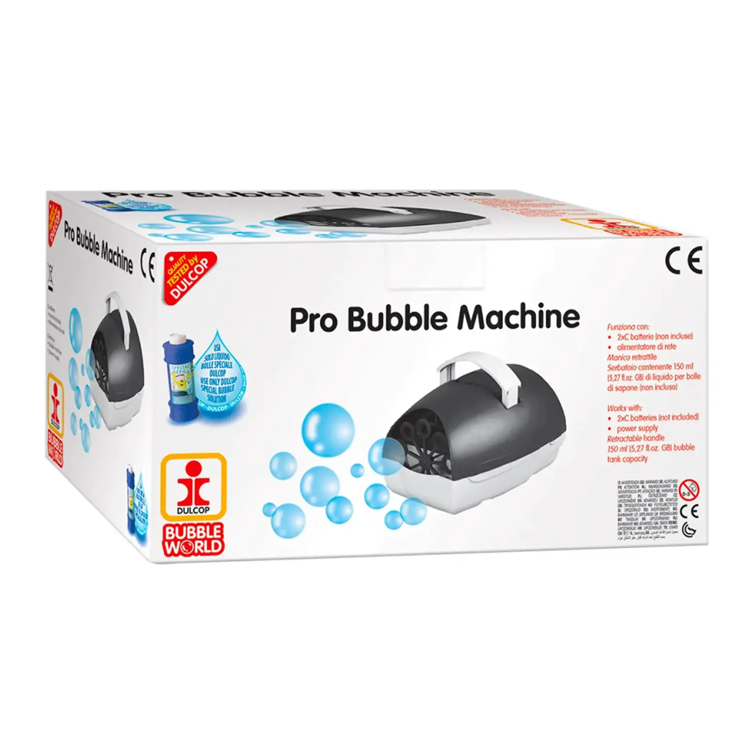 - Il liquido speciale per bolle di sapone è necessario per il funzionamento e non è incluso nella confezione