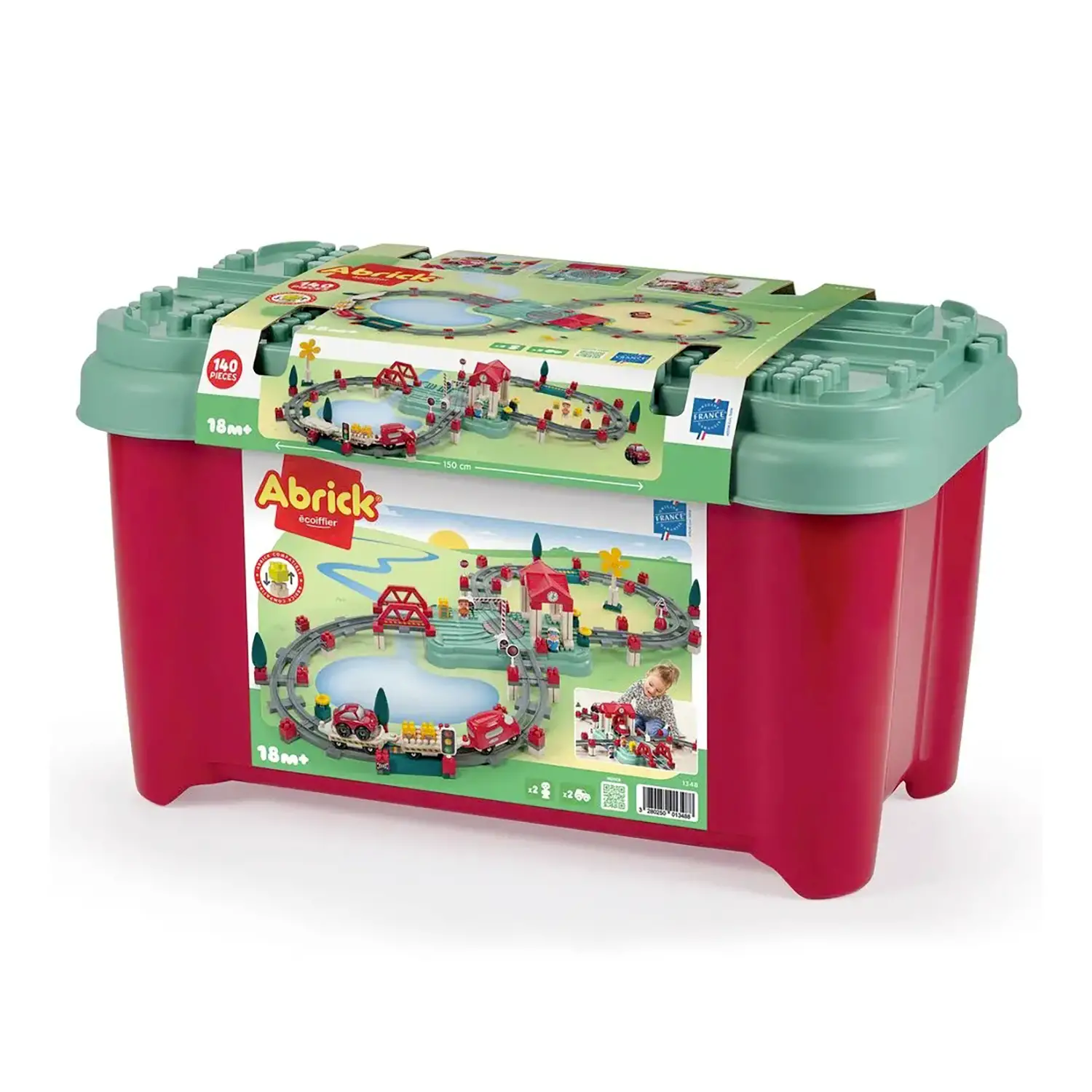 Tutto il mondo del treno in un solo barilotto! - Questo pratico barilotto contiene tutto il necessario per costruire un circuito ferroviario completo: binari da assemblare, una stazione e tanti elementi ambientali per dare vita a un vero mondo in miniatura.