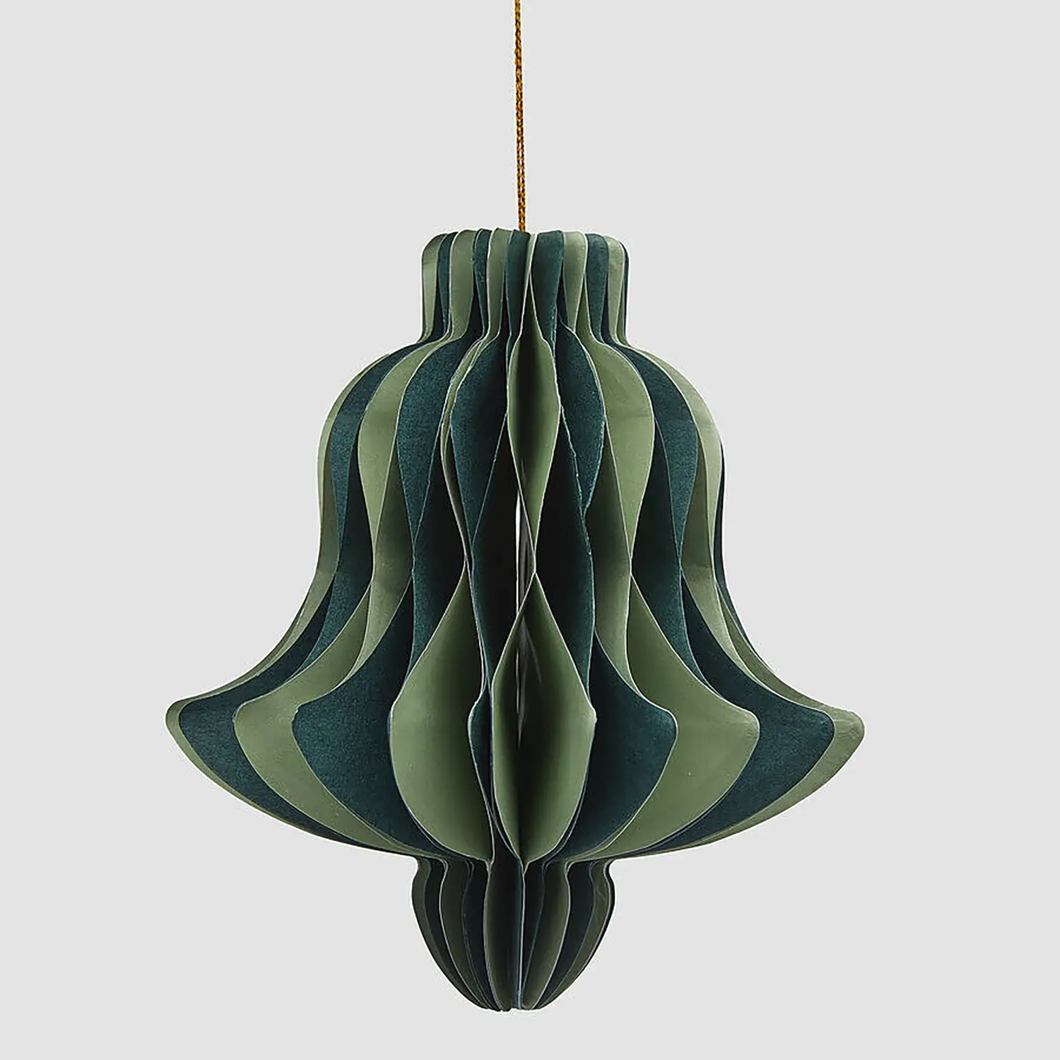 Addobbo Natalizio Campana Origami Verde H15 D13 Carta