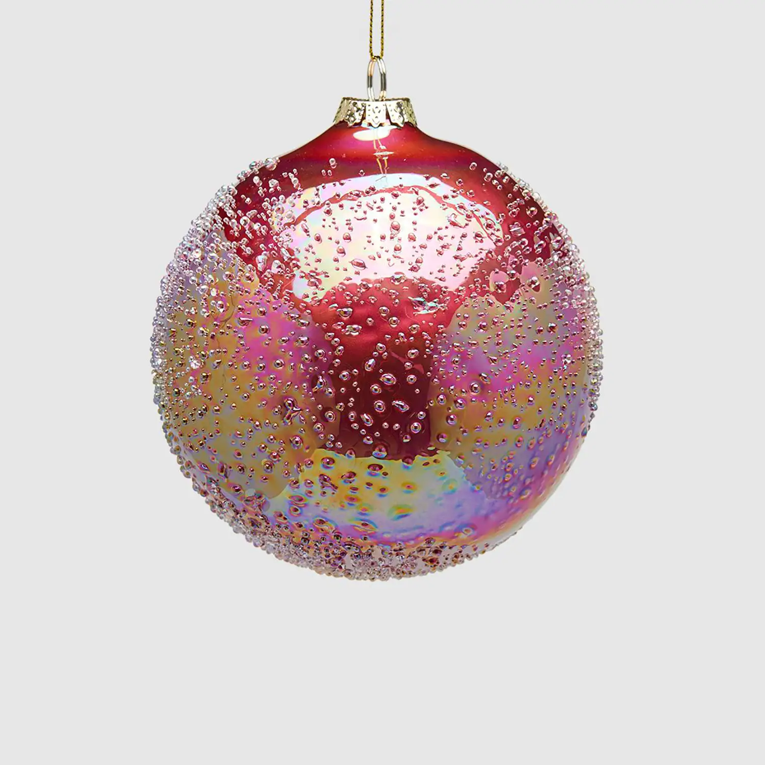 Caratteristiche principali: - Materiale: Vetro di alta qualità - Diametro: 12 cm - Dettagli: Microbolle per un effetto luminoso - Colore: Rossa con riflessi iridescenti