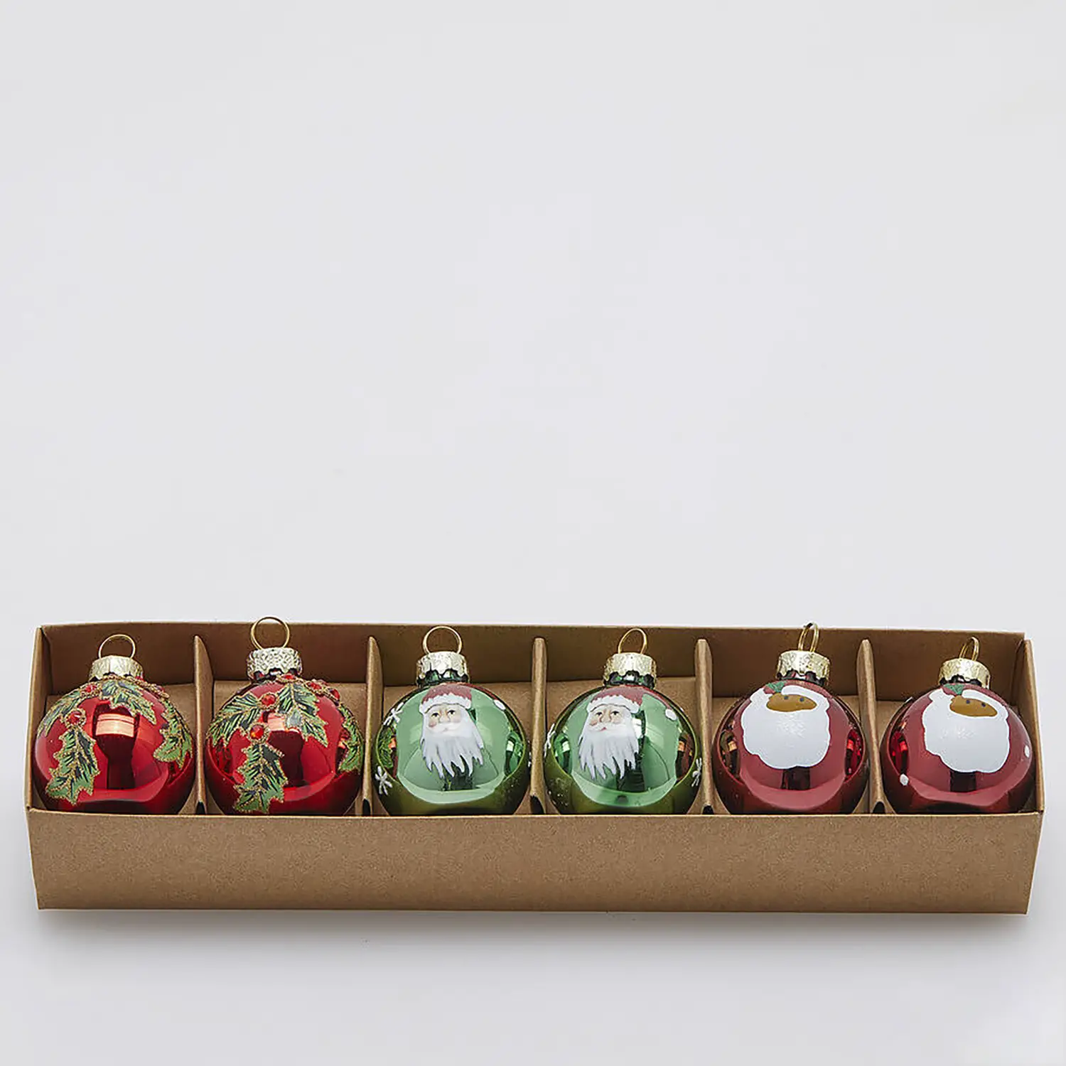 Set 6 Palle Natale Babbo in Vetro Ø4cm EDG Green Red