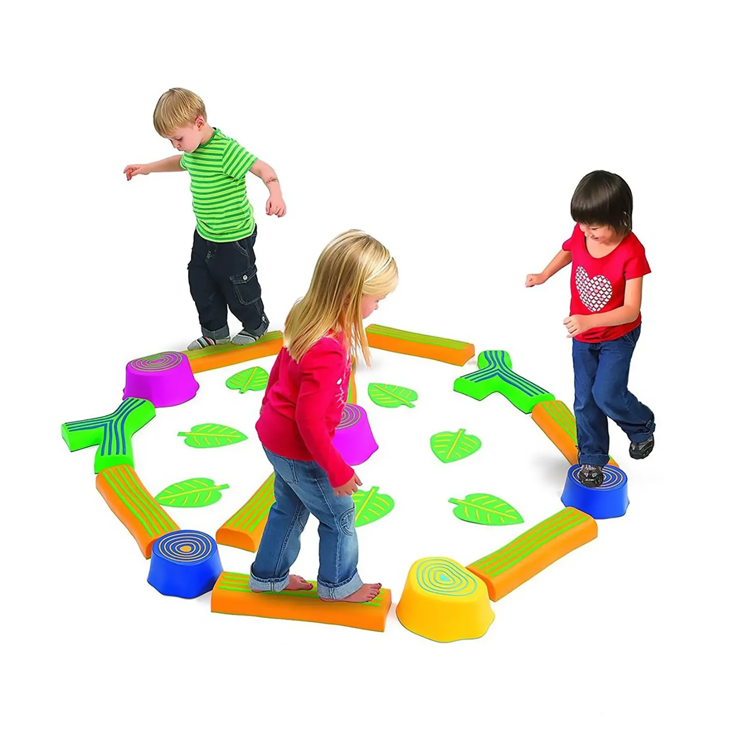 Sviluppo Motorio: Saltare, camminare e bilanciarsi sui diversi elementi promuove la coordinazione e l’equilibrio.