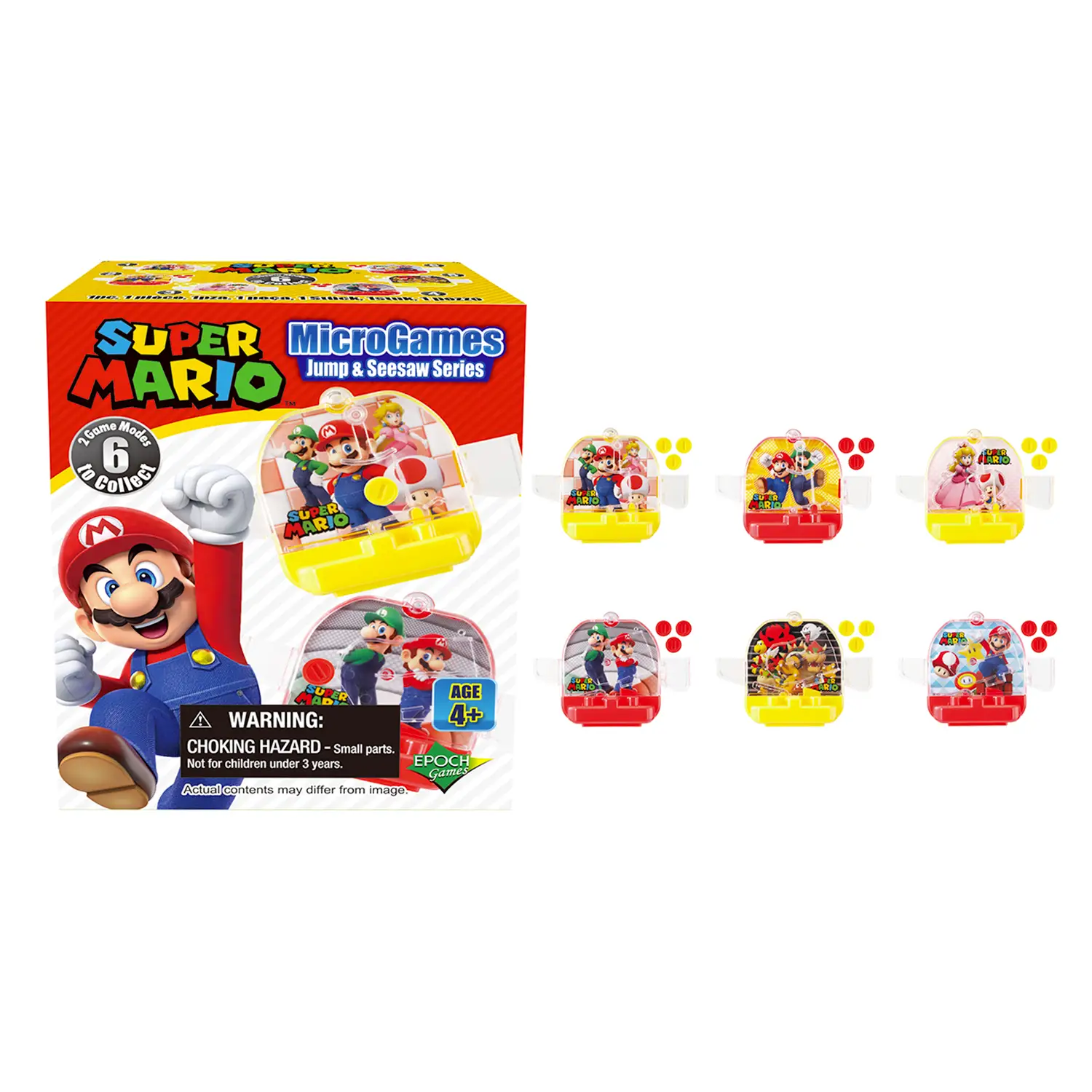 Colleziona Tutti i Modelli Disponibili 6 diversi mini giochi da collezionare. Ogni confezione è una sorpresa: scopri quale versione riceverai e completa la tua collezione Super Mario con scenari sempre nuovi.