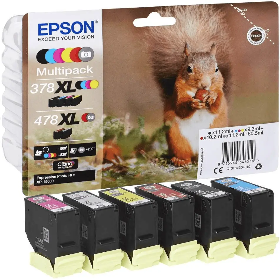 EPSON PACK 6 INK CARTRIDGES MULTIPACK 1 PER COLOR 378XL + 478XL SQUIRREL