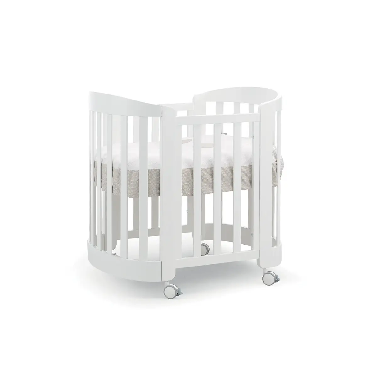 Crib: Initial Use: The crib can be used from the early days as a bassinet, with 3 adjustable positions for the bedstead. Internal Measurements: 85 x 61 cm. Separable side rails: The two side rails can be joined together. Crib: Transformation: Using the other net and the large side rail provided, the crib can be transformed into a crib. Internal Measurements of the Cot: 128 x 61 cm. Recommended Age: Useful up to 4 years old for little ones. Montessori Position: Low Position: The bassinet/crib offers the possibility of positioning the bedstead at different heights, with a low position that, by removing one of the side rails and wheels, becomes a Montessori position to encourage independence for growing children. Accessories Included: Cot/Crib Structure Mattress for Crib: Dimensions 85 x 61 x 8 cm. Mattress for Crib: Dimensions 128 x 61 x 10 cm. Overall Dimensions: Dimensions of Cot: 89.5 x 67 x 89 cm. Dimensions of Cot: 132.5 x 67 x 89 cm. The ability to adapt the crib to the child's growth, including the Montessori stage, provides flexibility and durability. The presence of included mattresses adds comfort and practicality to the product.