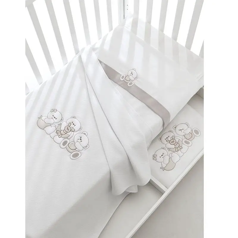 - ✅ Crib sheet set from Erbesi's Mirtillo Collection, with a tender and refined design.
