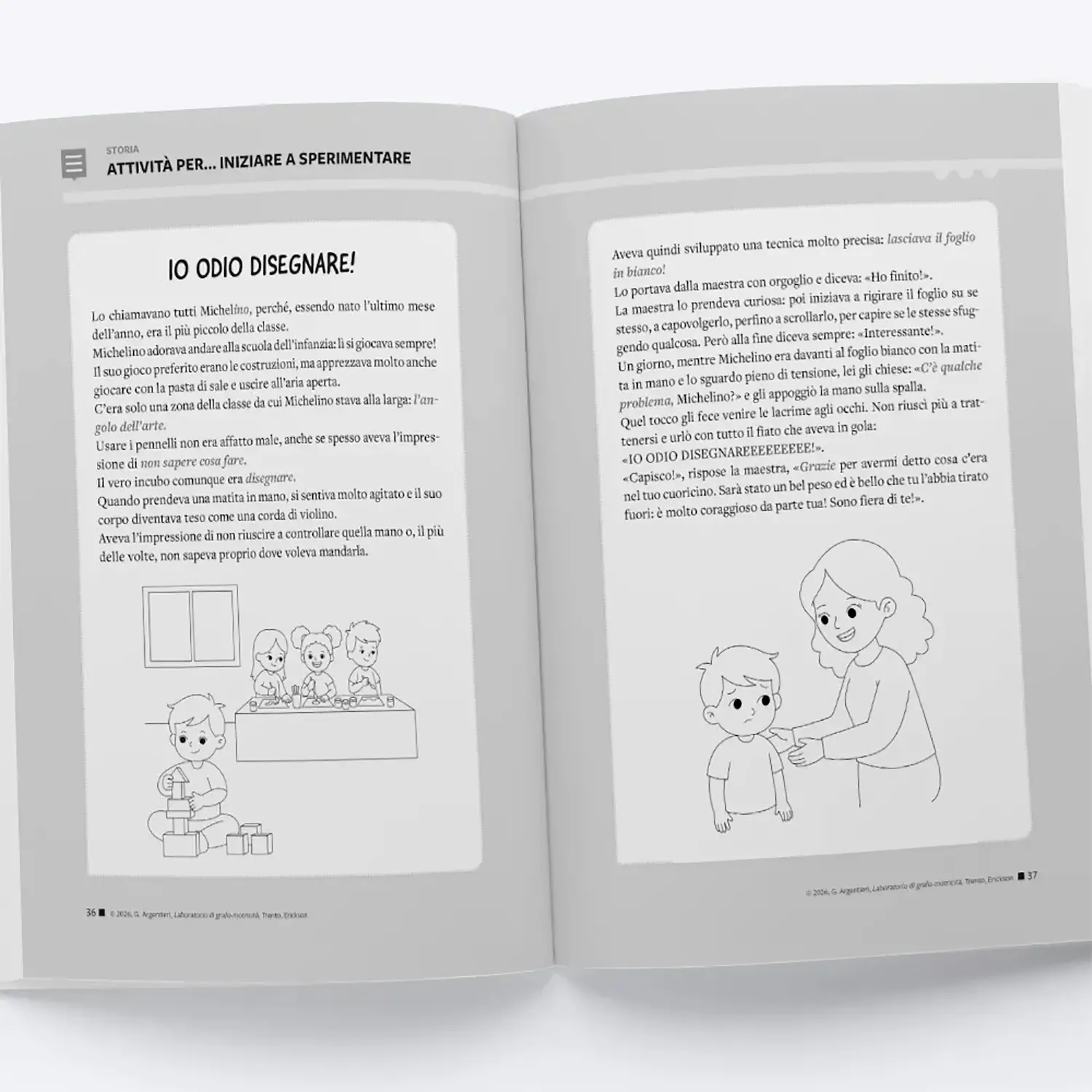 Attività guidate e progressive Propone un percorso strutturato con attività su schema corporeo, volti, paesaggi e forme geometriche, favorendo integrazione visuo-spaziale e controllo del gesto grafico.