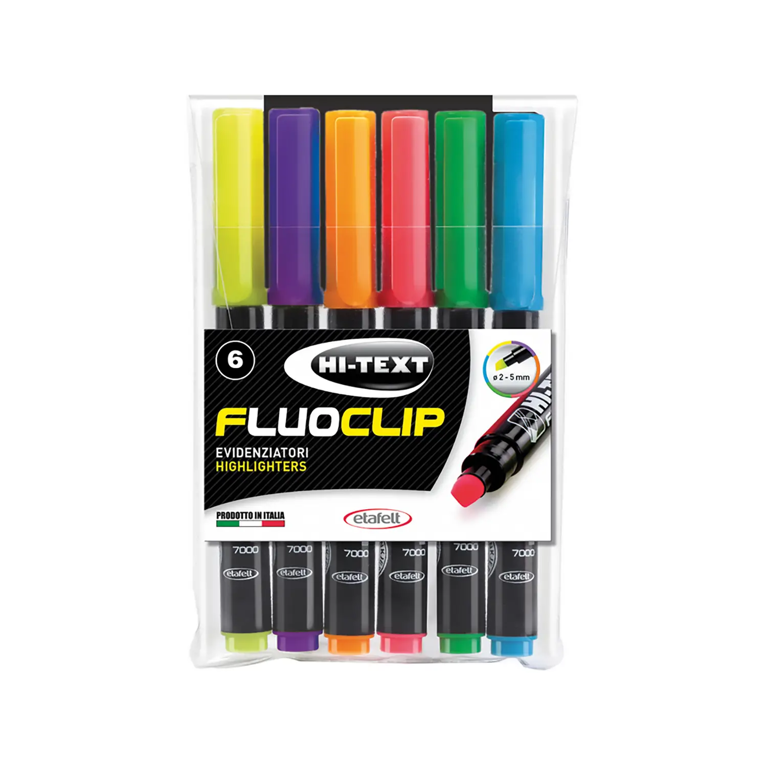 - ✅ Set di 6 evidenziatori Fluoclip con colori vivaci, ideali per scuola, ufficio e studio.