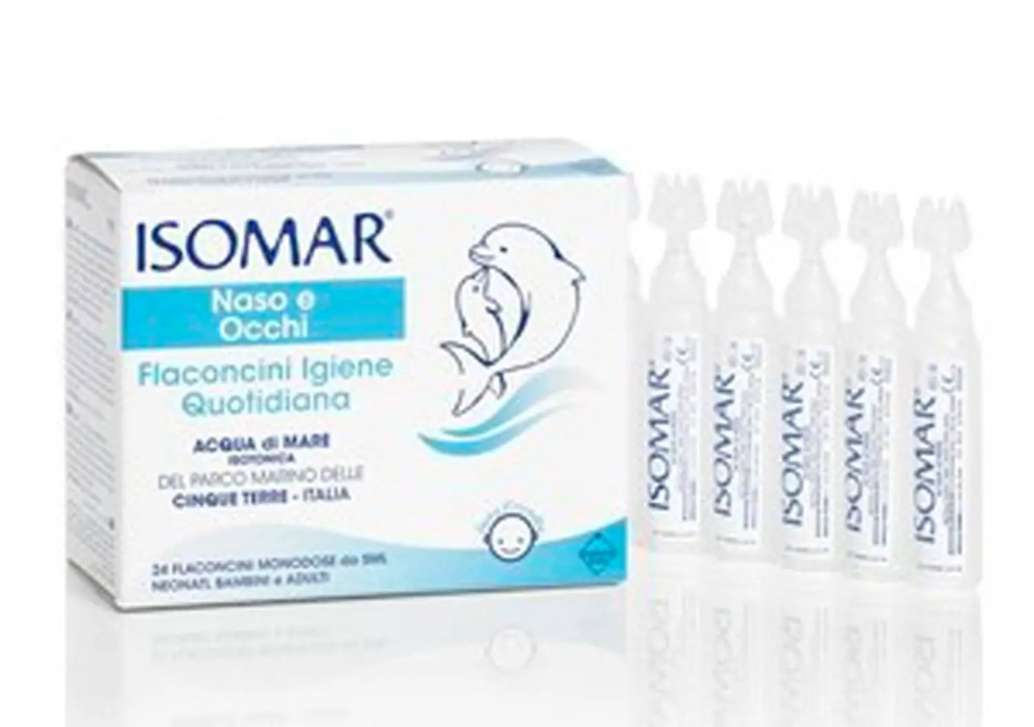 ISOMAR Naso e Occhi Flaconcini igiene quotidiana Dispositivo medico CE, sterile. Soluzione isotonica e sterile di acqua di mare del Parco Marino delle Cinque Terre Si utilizza in caso di raffreddore, sinusite, riniti, allergie respiratorie in genere anche da polline e per chi opera in ambienti chiusi soprattutto in presenza di polvere. Come solvente del muco e del residui ematici della mucosa del naso, per l'igiene e la pulizia della bocca e degli occhi di neonati e lattanti, per la pulizia del capezzolo delle donne in allattamento. Nell'adulto consente un miglior drenaggio delle mucosità nasali. Utile per chi ha subito interventi chirurgici nasali e per chi russa. Per il lavaggio della superficie oculare in caso di sensazione di secchezza e disturbi minori non patologici come bruciore, arrossamento ed affaticamento oculare indotti da fattori esterni quali: esposizione a vento e raggi solari, polveri, polline, fumi, salsedine, ambienti secchi (climatizzatore, caldo secco...), permanenza prolungata davanti a schermi video ed uso di lenti a contatto. Modalità di utilizzo Aprire il flaconcino sigillato ruotando il cappuccio Introdurre il flaconcino monodose nelle narici del bambino disteso Premere Il flaconcino fino a farne uscire lo dose desiderata Per il bambino in grado di utilizzare il prodotto da solo e per l'adulto, introdurre il flaconcino alternativamente nelle narici, premendolo ogni volta, con la testa all'indietro, inspirando e chiudendo con il dito l'altra narice. Può essere utilizzato in aerosolterapia. Per il lavaggio della superficie oculare: instillare una o più gocce nel sacco congiuntivale, secondo necessità, anche frequentemente nell'arco della giornata. Componenti Acqua di mare isotonica del Parco Marino delle Cinque Terre.