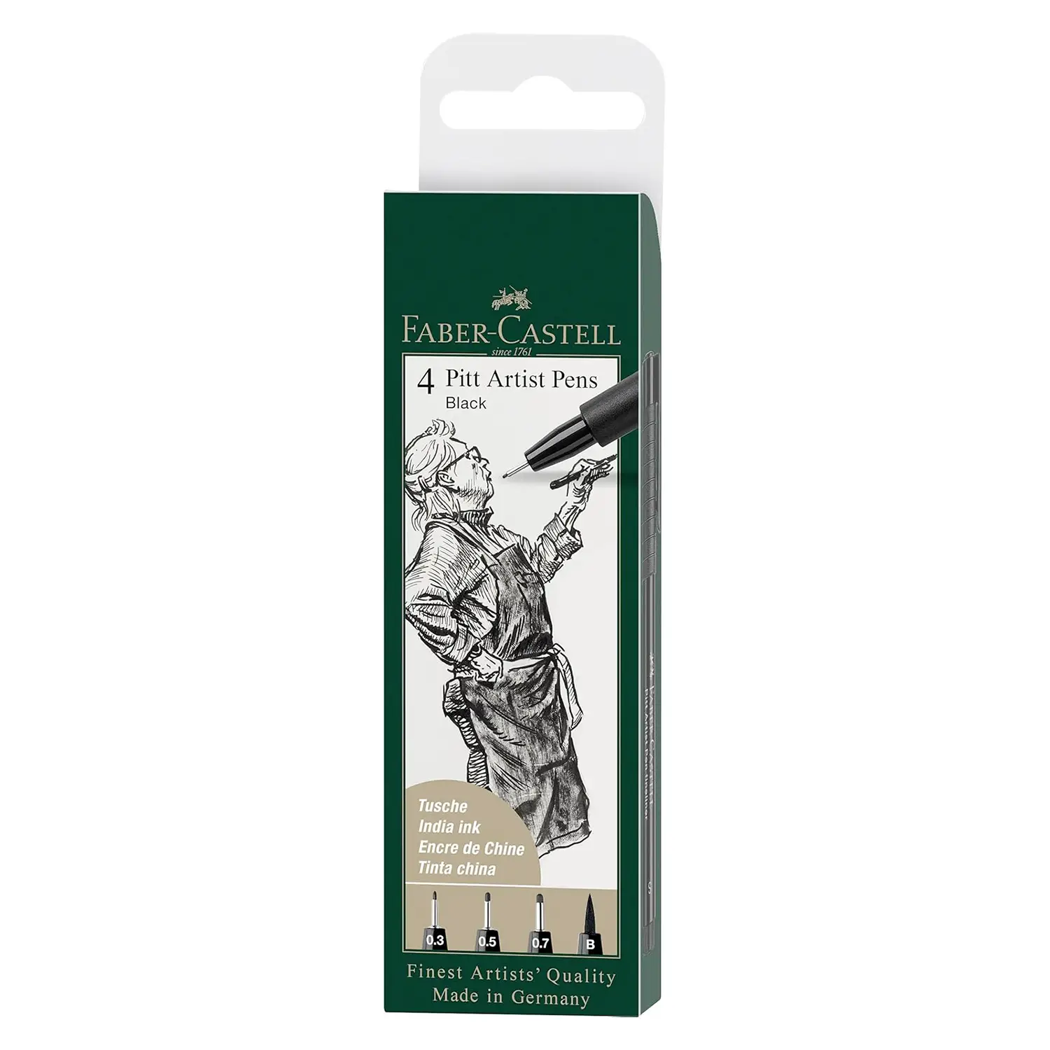 Pitt Artist Pen Faber Castell Set 4 Drawing Tips Black