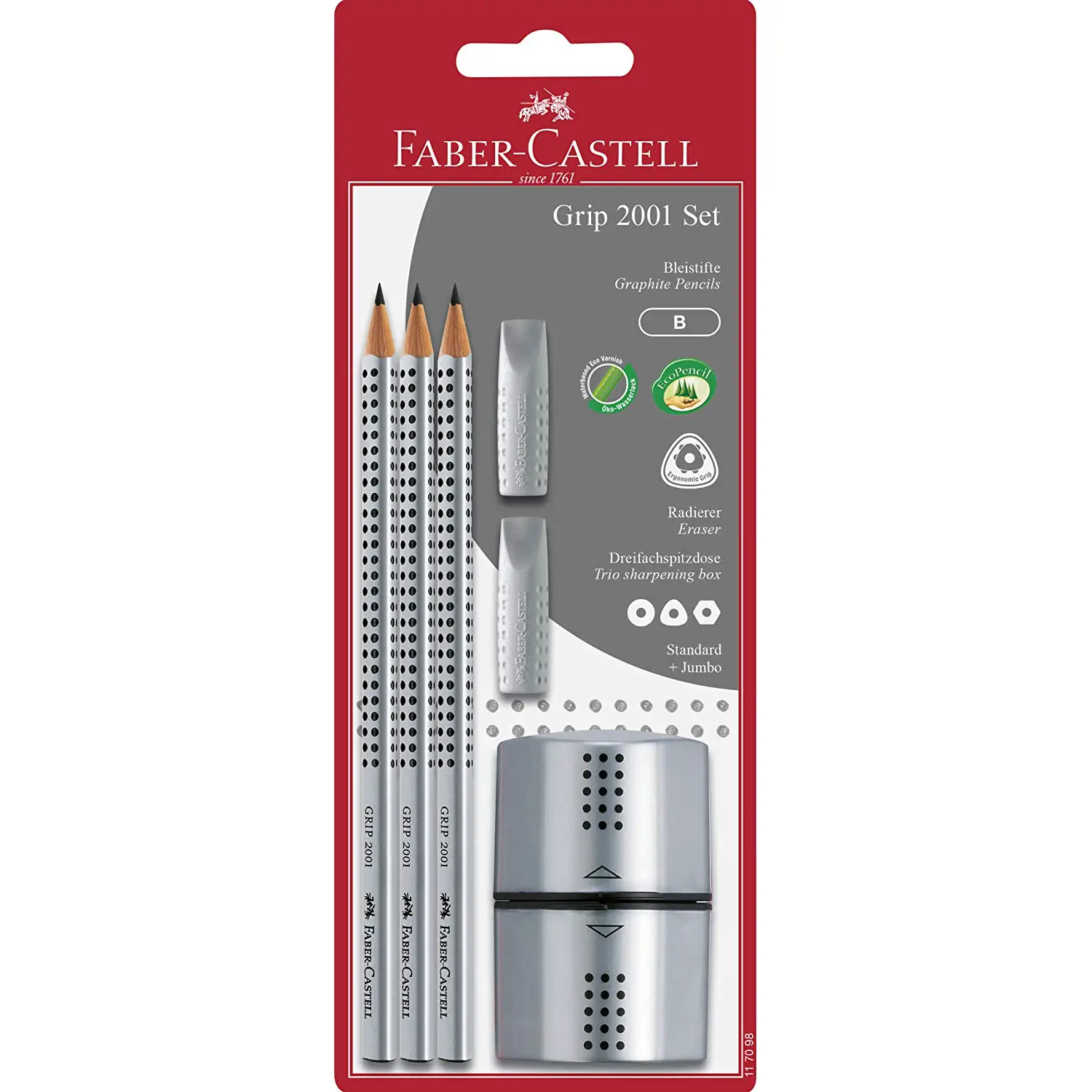 Il set Grip 2001 con tre matite B è la soluzione ideale per chi cerca qualità, precisione e praticità. Grazie alla forma ergonomica, alla resistenza elevata e agli accessori inclusi, questo set è perfetto per scuola, ufficio, disegno tecnico e artistico, garantendo sempre risultati ottimali.