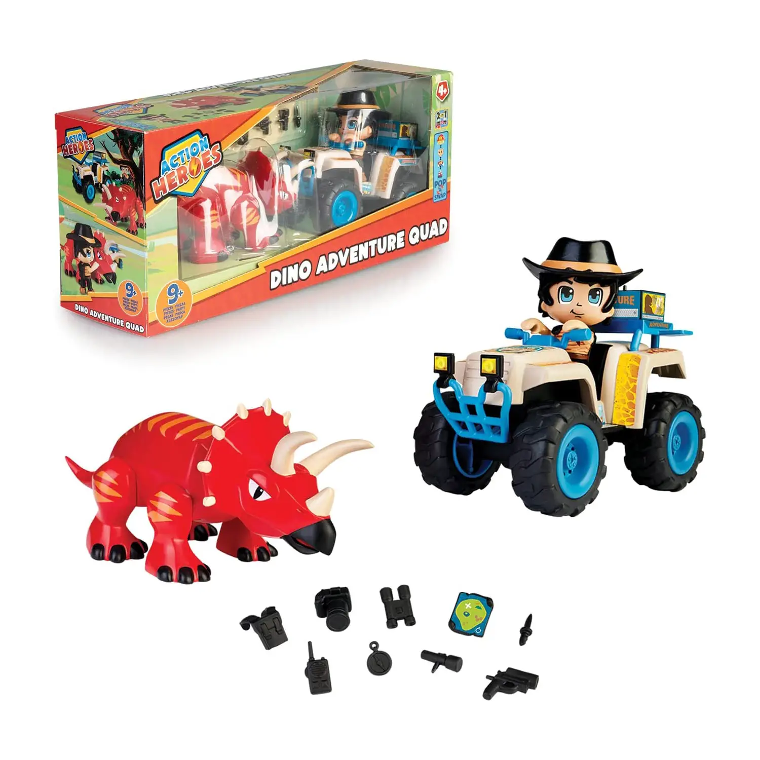 Discover the Action Heroes Dino Adventure Quad with triceratops, perfect for jungle adventures. It includes a sturdy quad for an engaging and realistic play experience.