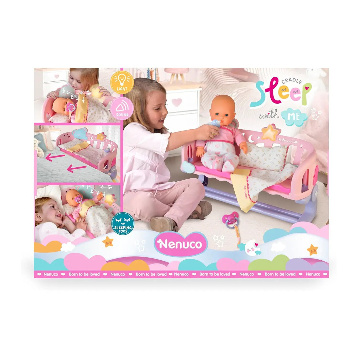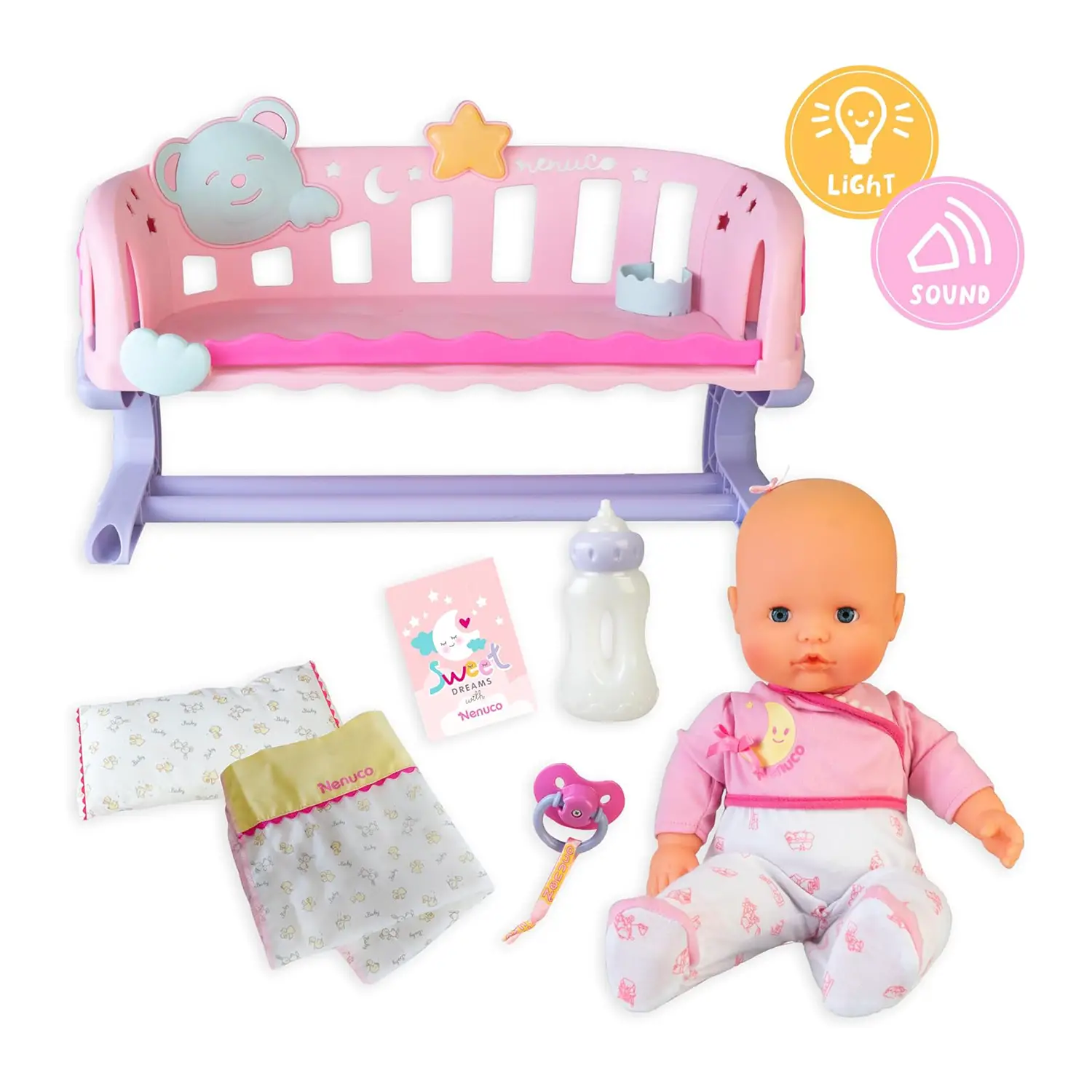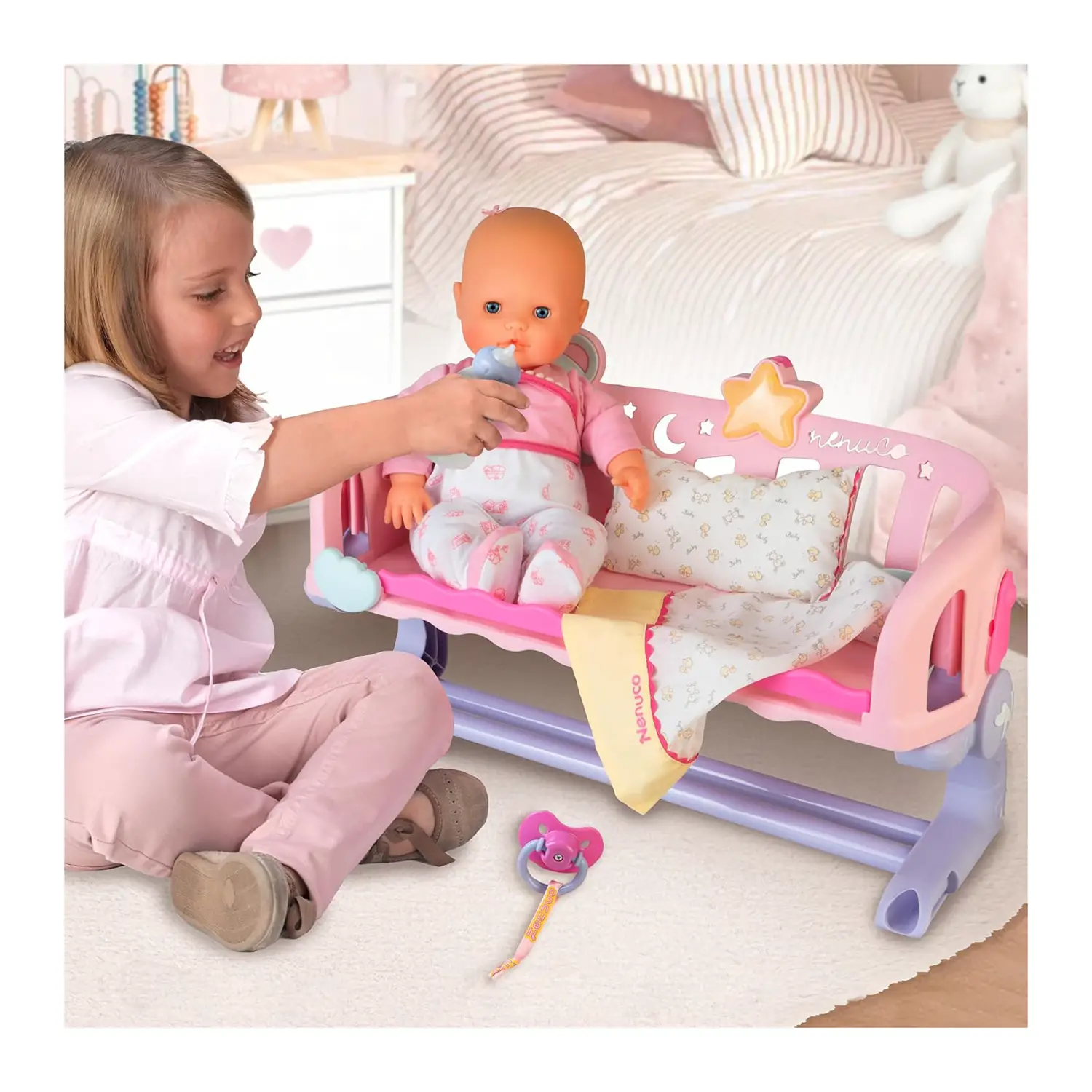 Bambola Nenuco 35 cm con Culla 3 in 1 La bambola Nenuco da 35 cm ha un corpo morbido e viene fornita con una pratica culla 3 in 1 per dormire, giocare o cullare in ogni momento. Ideale per momenti di gioco affettuoso e realistico.