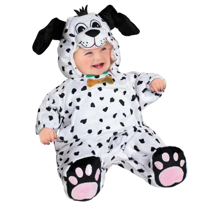 - Dettagli Autentici: Le macchie tipiche dei dalmati sono presenti sia sul saccotto che sulla cuffia, rendendo il costume realistico e adorabile.