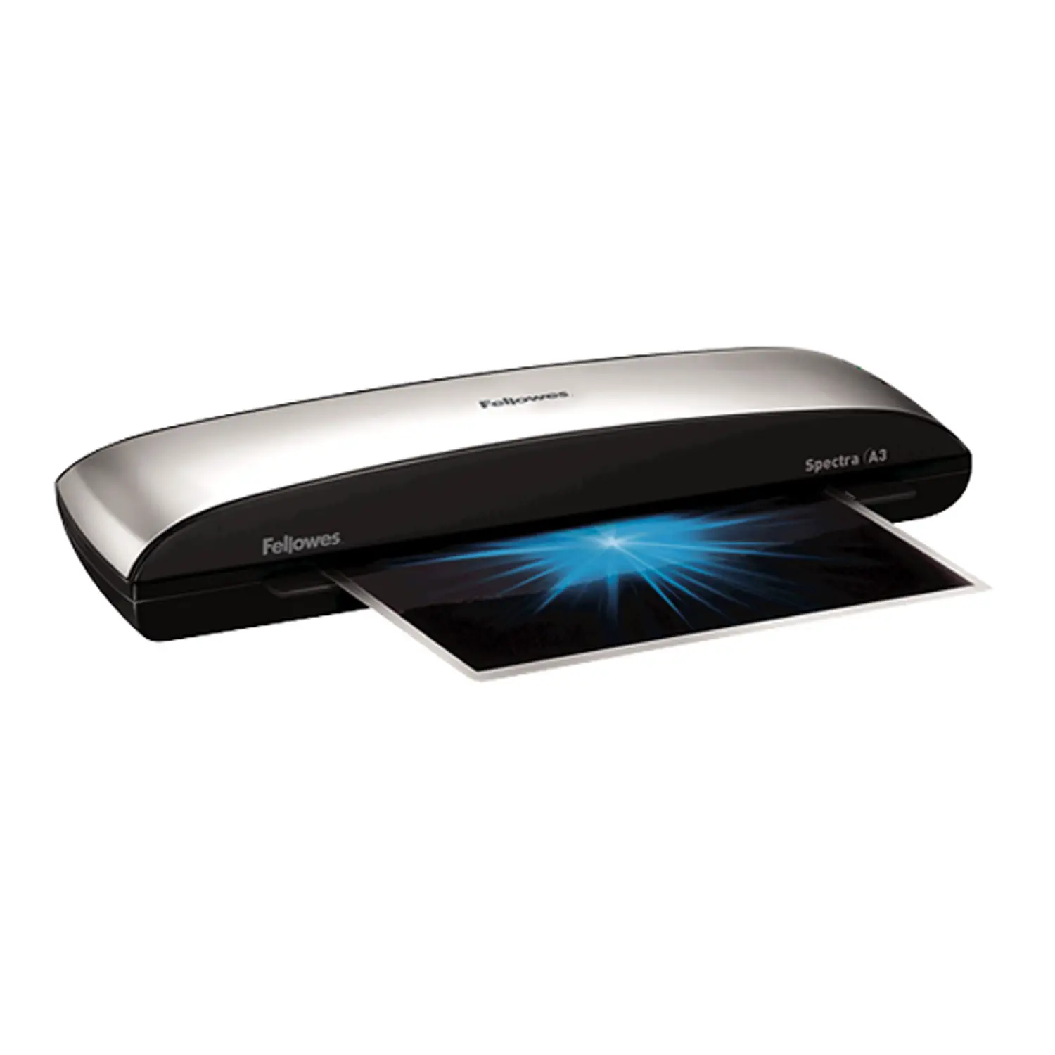 The Spectra Fellowes A3-size laminator is ideal for laminating photos and documents with a heated 2-roller technology. It has a laminating speed of 30 cm/min and can laminate pouches up to 125 microns thick.