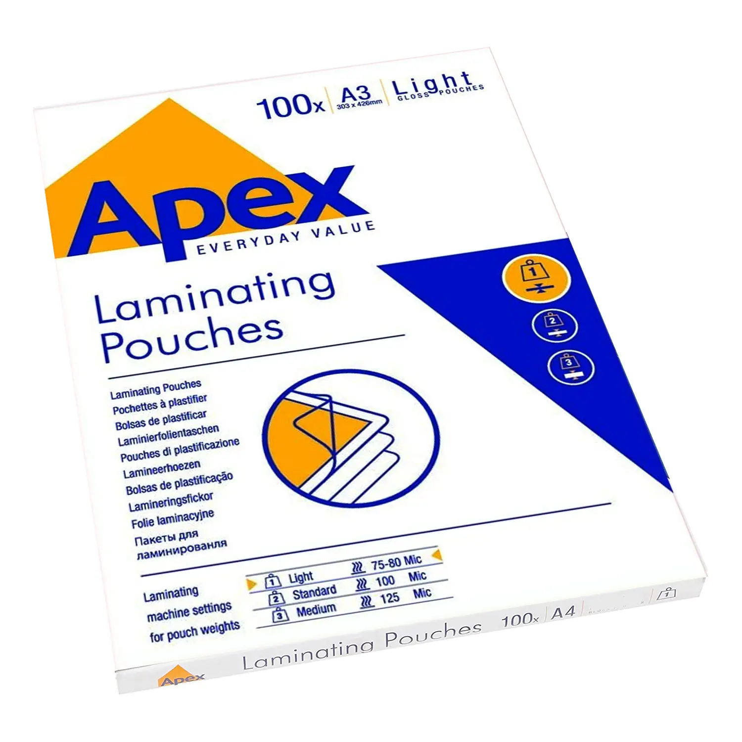 Pouches Plastification Apex A3 Thickness 75-80 Microns 100 Pieces