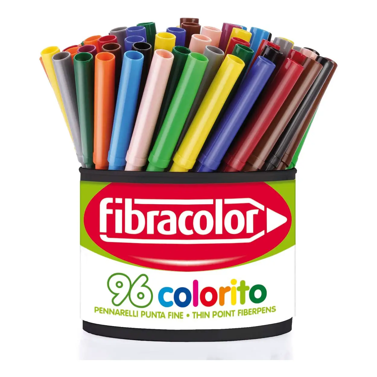 Fibracolor Colorito Fine Pennarelli – Barattolo 96 Pennarelli in 12 colori