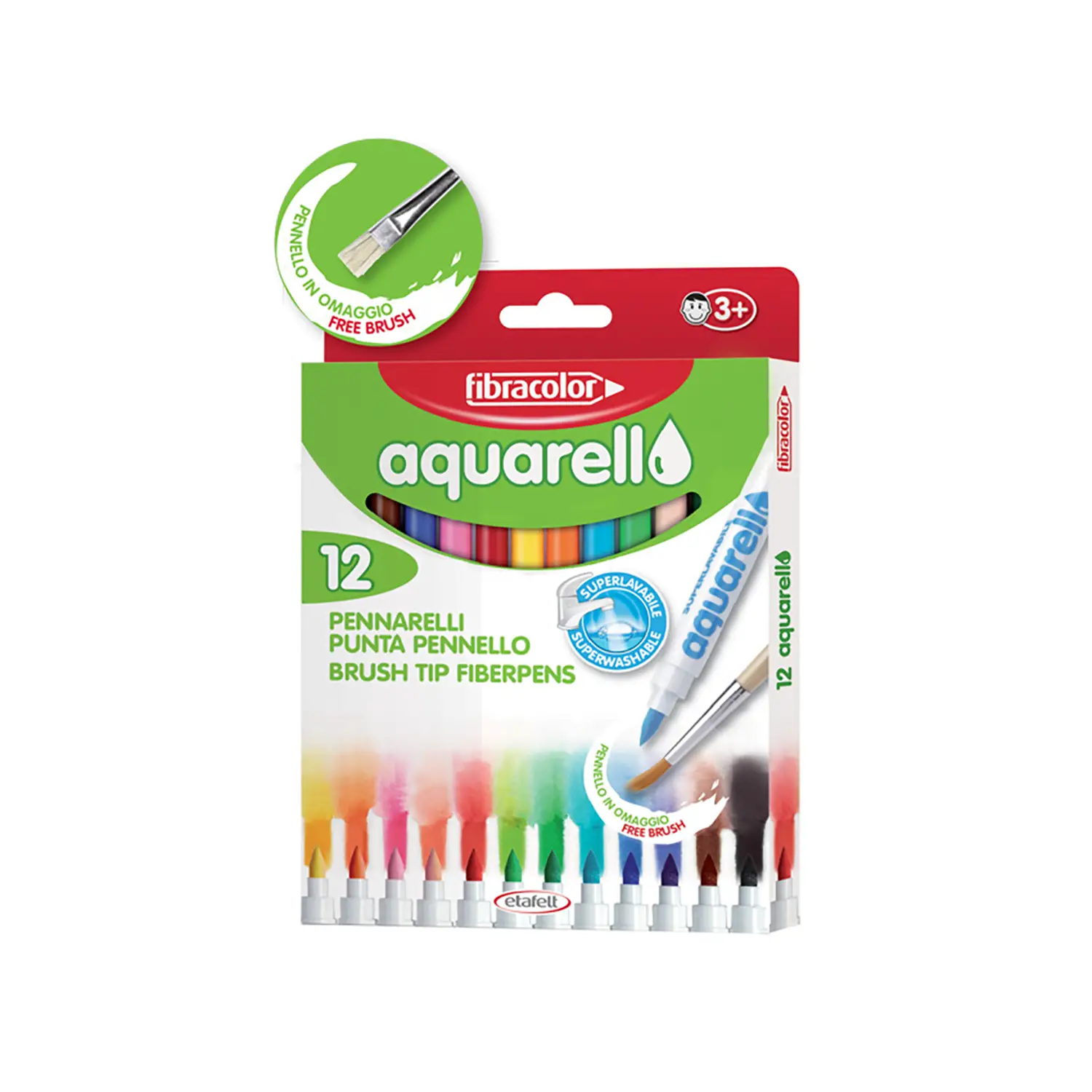 Fibracolor Aquarello Watercolor Brush Tip Markers - 12 Colors