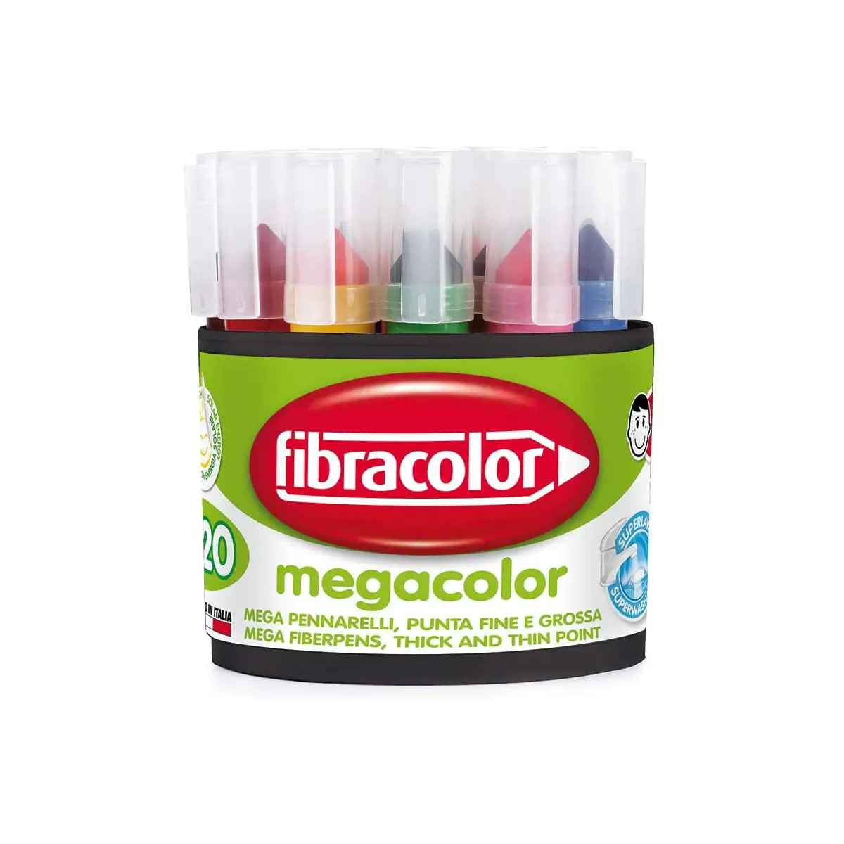 Pennarelli Megacolor Fibracolor – 20 Pennarelli in 10 Colori - Doppio Tratto 2-12 mm