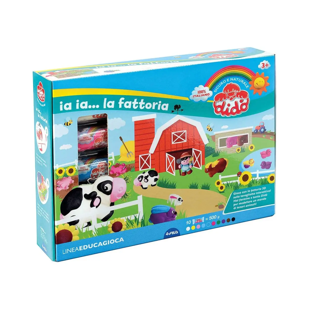 - ✅ Contiene fattoria in cartone da montare su tappetino a tema, animali modellabili con Didò.