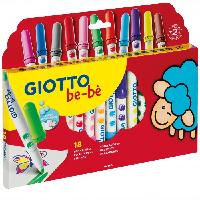 Giotto Bebè Astuccio 18 Pennarelli – Colorati, Lavabili e Sicuri per Bambini