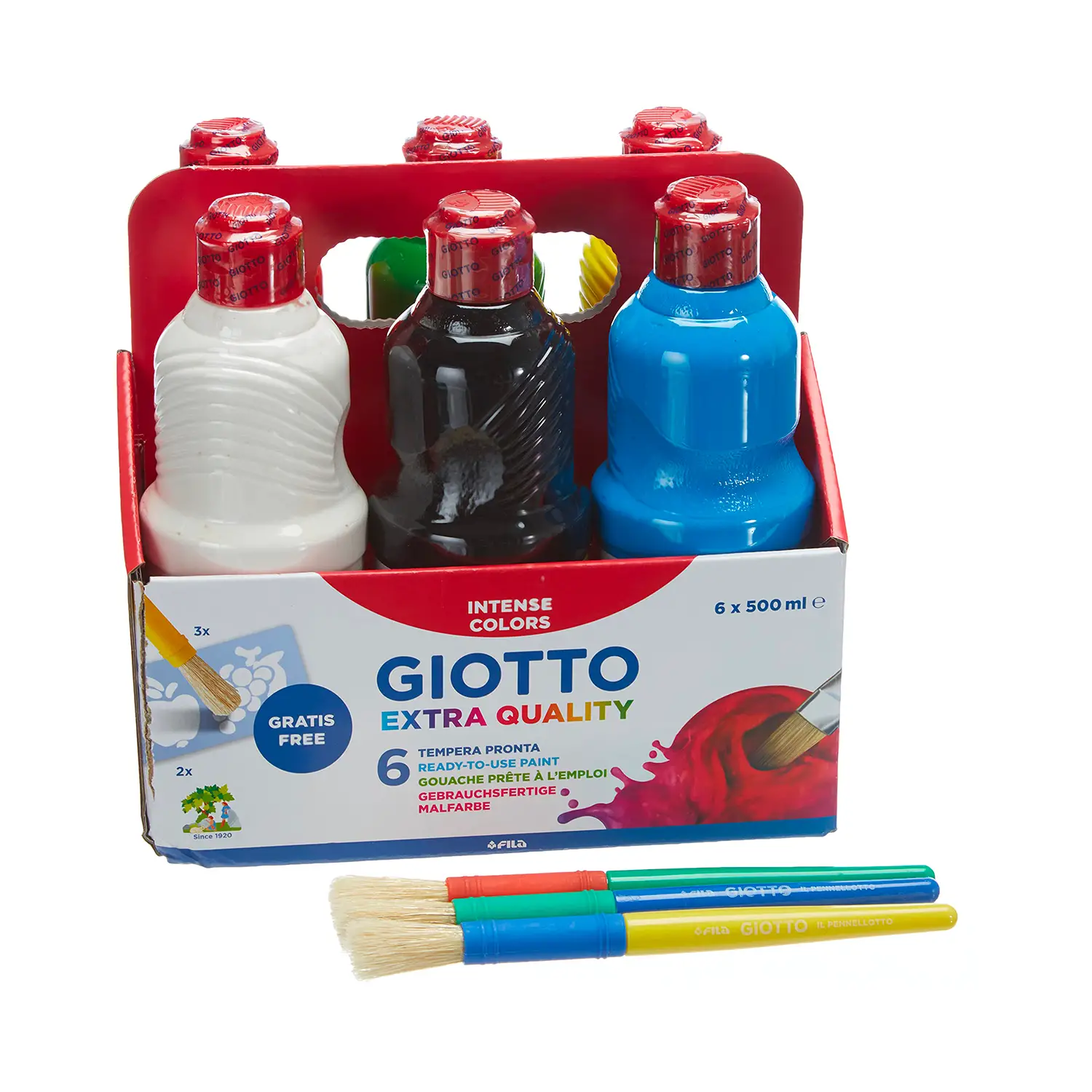 Tempera Pronta Extra Quality Giotto – Confezione 6 x 500 ml + 3 pennellotti e 2 stencil