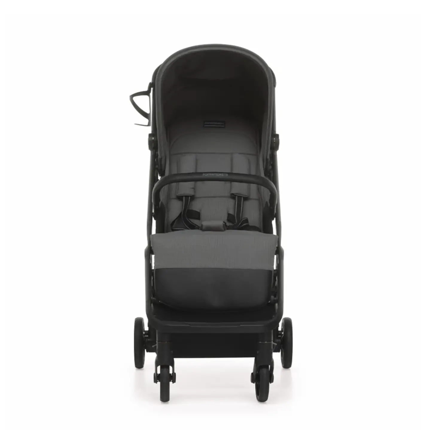 Ultra lightweight and compact - Perfect for travel, even on airplanes One-handed automatic closure - Remains upright on its own once closed Fabric with UPF50+ sun protection - Effective protection from UV rays Water-resistant H2O zippers - For added durability Micro-perforated leather effect handle - Stylish and features integrated bottle holder EasyClose system - Easy attachment of safety straps with magnetic buckle Extendable canopy with baby watch window - Optimal protection and visibility High backrest and adjustable footrest - Maximum comfort with fully reclined position Gate-opening protective armrest - More convenience for getting baby on and off Cushioned wheels with ball bearings - For a smooth and safe ride Large storage basket - With reflective details for enhanced visibility