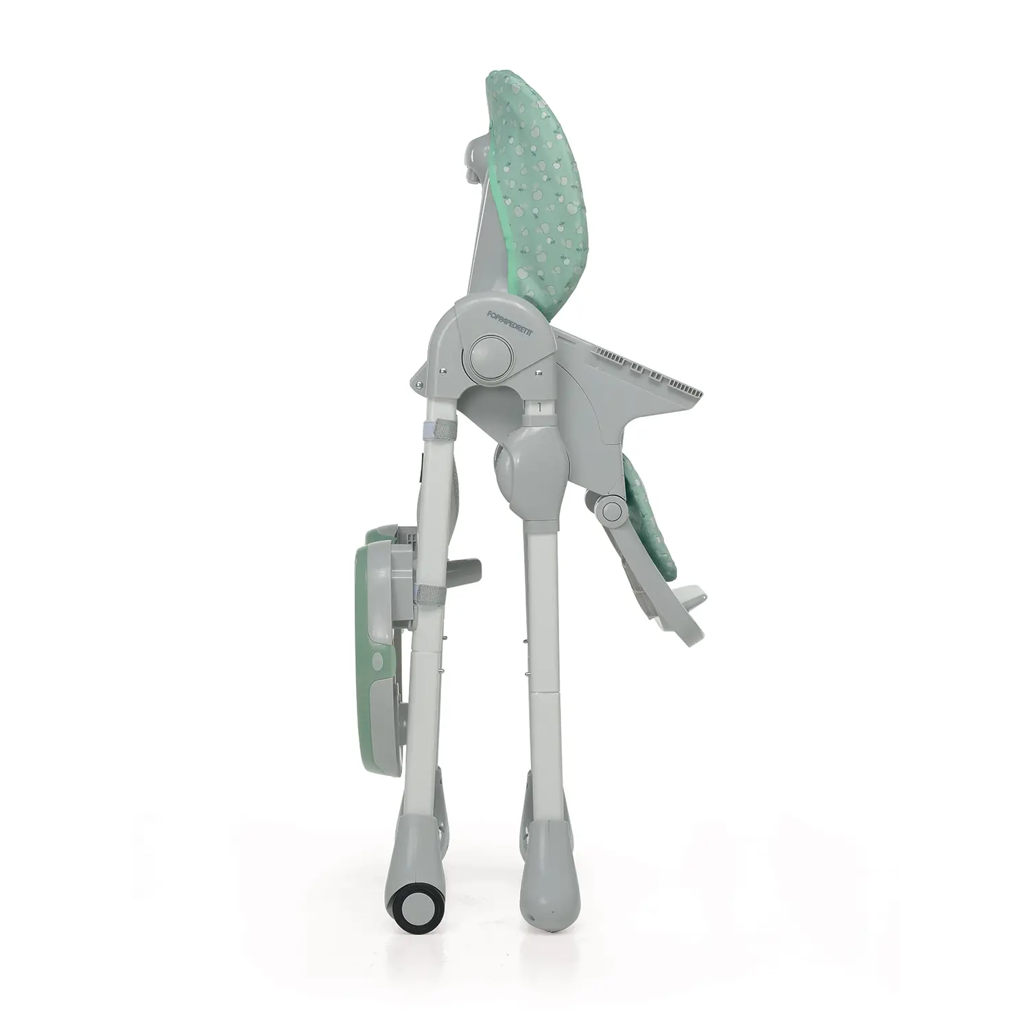 Seduta regolabile e schienale reclinabile La seduta regolabile in altezza su più posizioni consente di adattare il seggiolone al tavolo e alle esigenze del bambino. Lo schienale reclinabile multiposizione permette di trovare sempre la postura più confortevole durante il pasto o il relax.