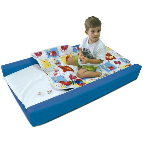 Questo lettino presenta sponde laterali morbide alte 15 cm e un materassino centrale di 6 cm, garantendo un ambiente sicuro e accogliente per i bambini. Ideale per il riposo e il gioco.