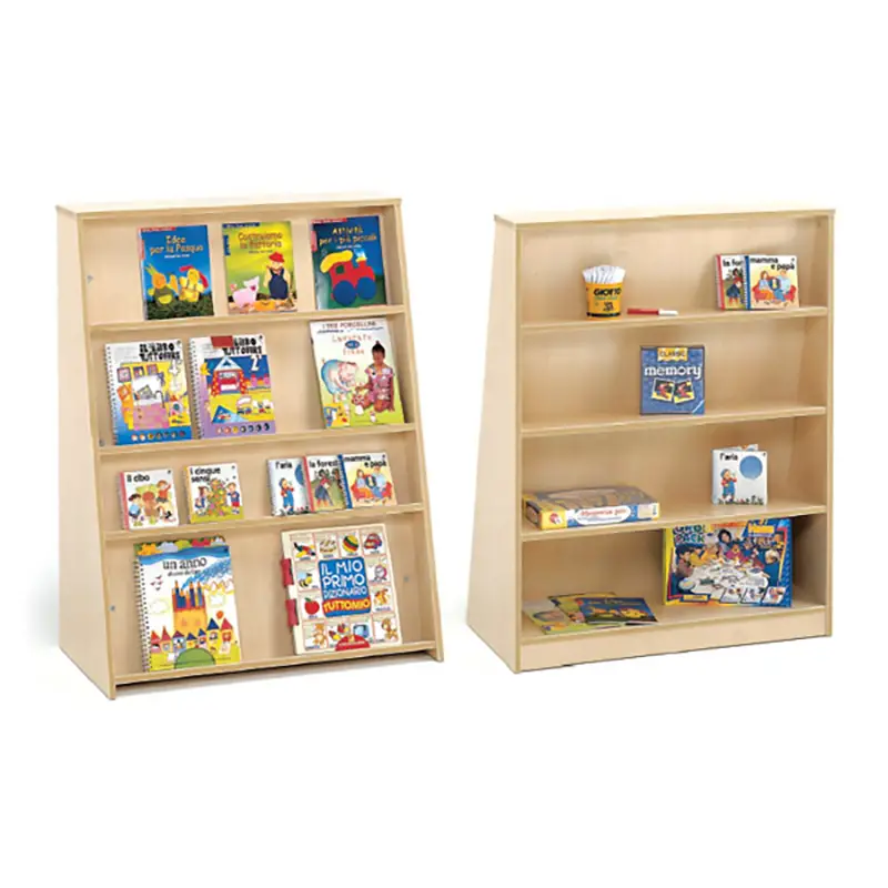 Questa libreria per bambini per scuola infanzia è progettata con due lati utilizzabili: