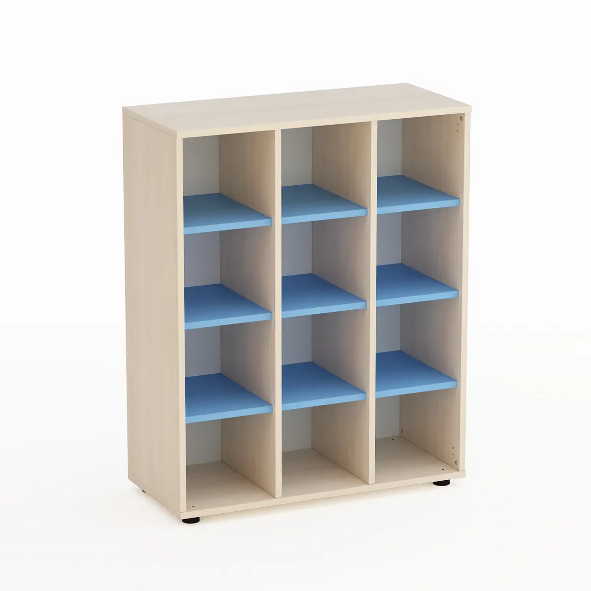 Questo mobile Kubò Betulla 12 caselle H 110 cm Bianco Blu Orizzonte è la soluzione ideale per arredare spazi educativi con ordine, sicurezza e funzionalità, offrendo praticità e stile agli ambienti scolastici.