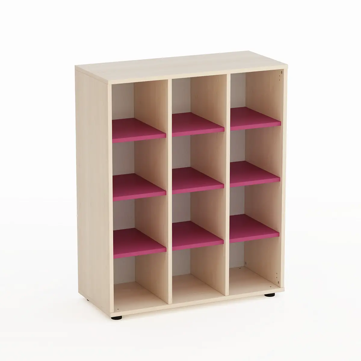 Questo mobile Kubò Betulla 12 caselle H 110 cm Bianco Fucsia è la soluzione ideale per arredare spazi educativi con ordine, sicurezza e funzionalità, offrendo praticità e stile agli ambienti scolastici.