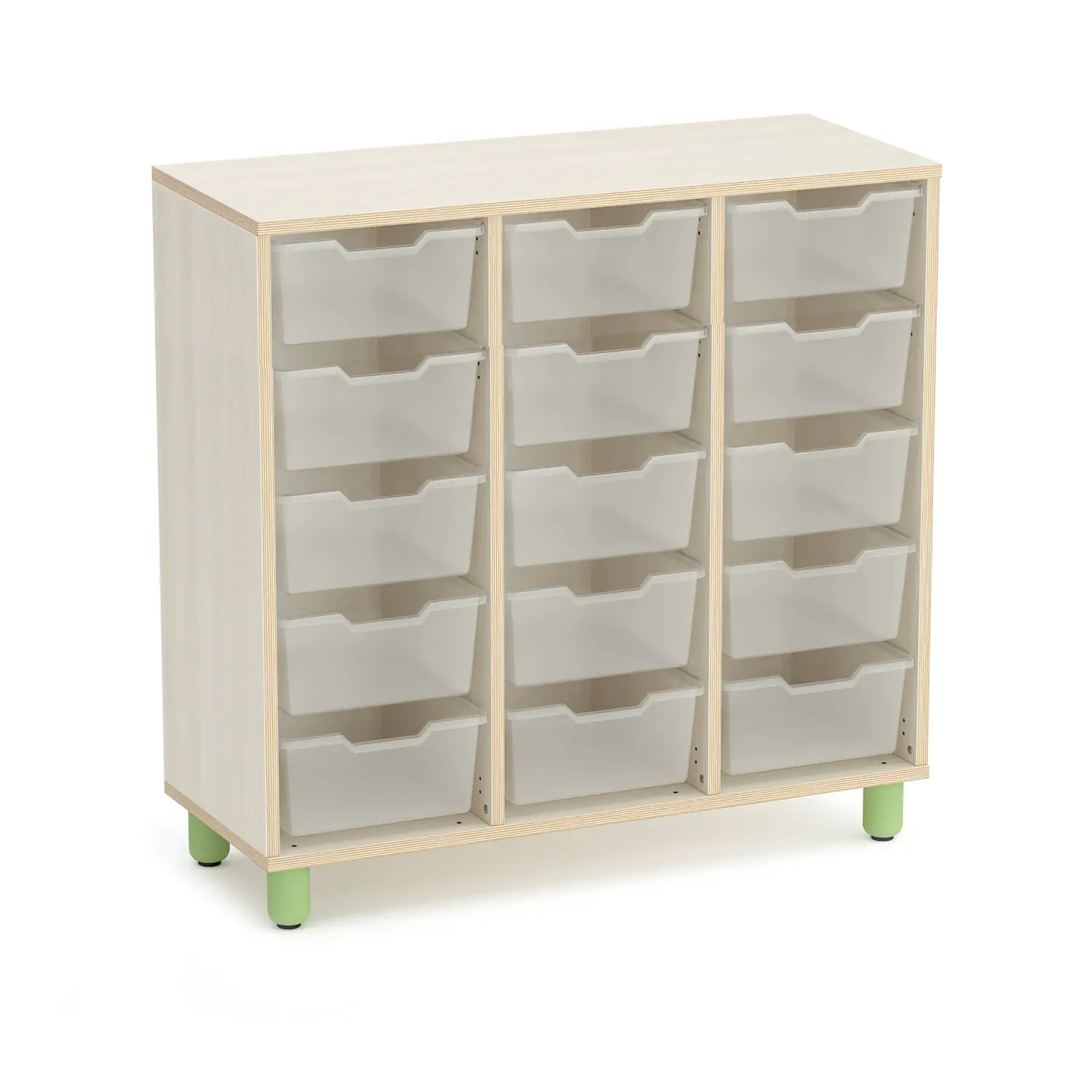 - Ampio Spazio di Archiviazione: Dotata di 15 cassetti estraibili in PPL colorato, ciascuno di dimensioni 31x38x15 cm, perfetti per giochi, libri e materiali scolastici.