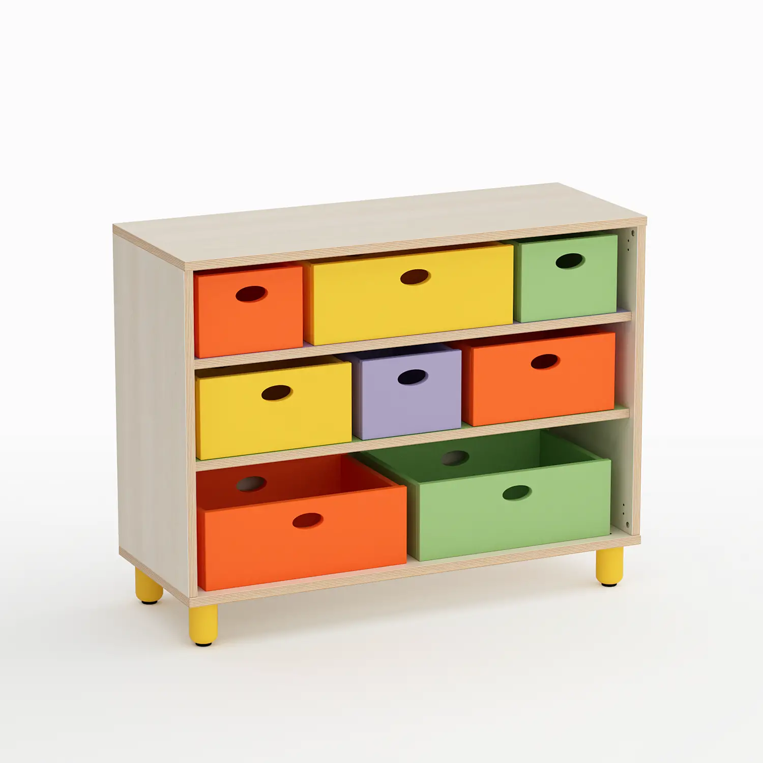 Mantieni la cameretta dei più piccoli ordinata, sicura e colorata con questo mobile basso e funzionale. Perfetto per sviluppare autonomia e organizzazione, combina design moderno, sicurezza e materiali certificati.