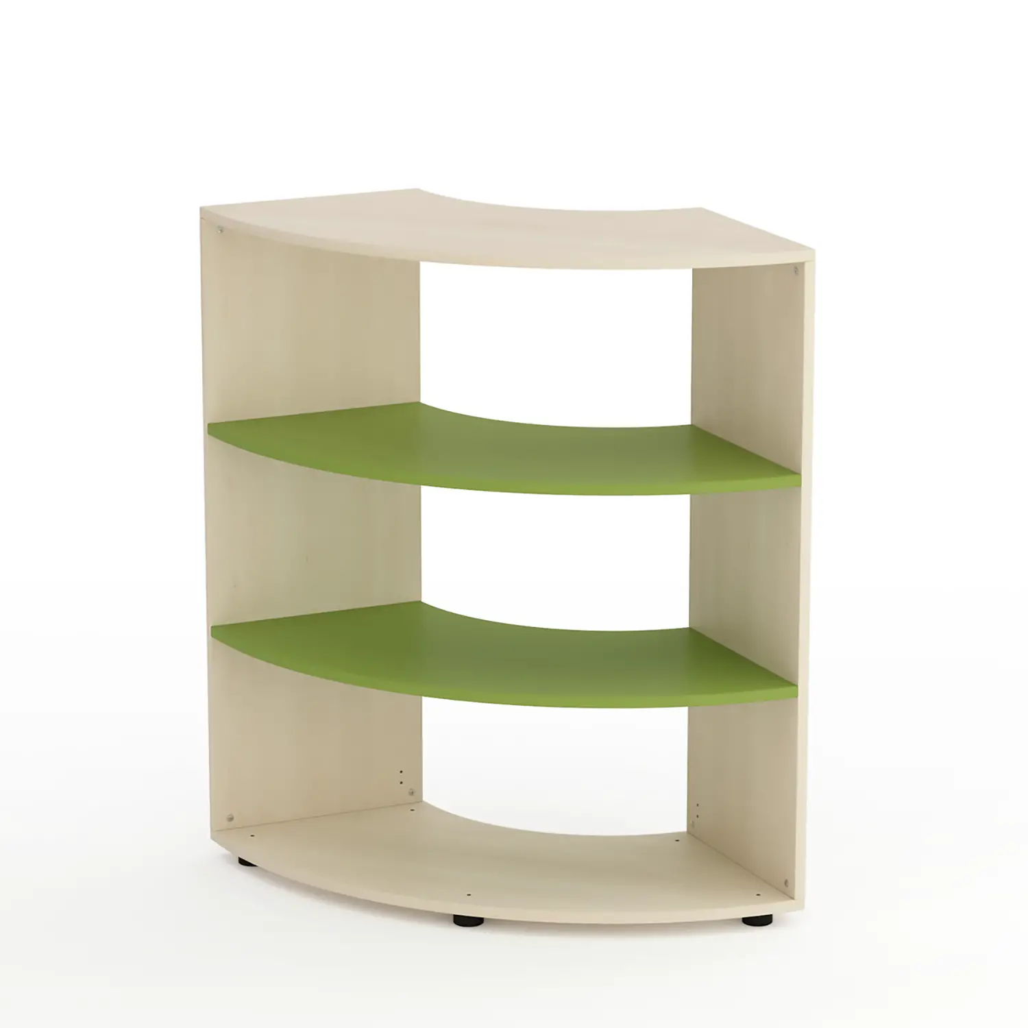Kubò School Cabinet Birch Curved Corner H 110 cm. Kiwi Green Shelves - CAM Compliant