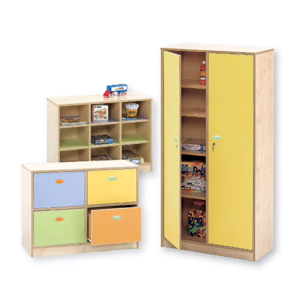 - M192 – Mobile a giorno: robusto e funzionale, con scomparti aperti per accesso immediato ai materiali. Design sicuro con bordi arrotondati in ABS e finitura acero coordinata.