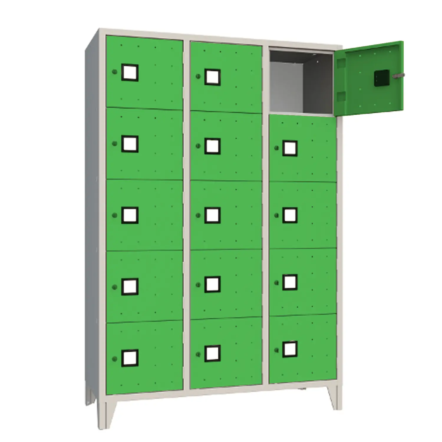 15-Place Square File Cabinet - Green Doors - CAM Compliant