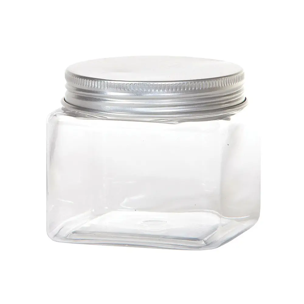 Barattolo Quadrato in Plastica con Tappo in Metallo - 7x7x6 cm - Set 6 Pezzi