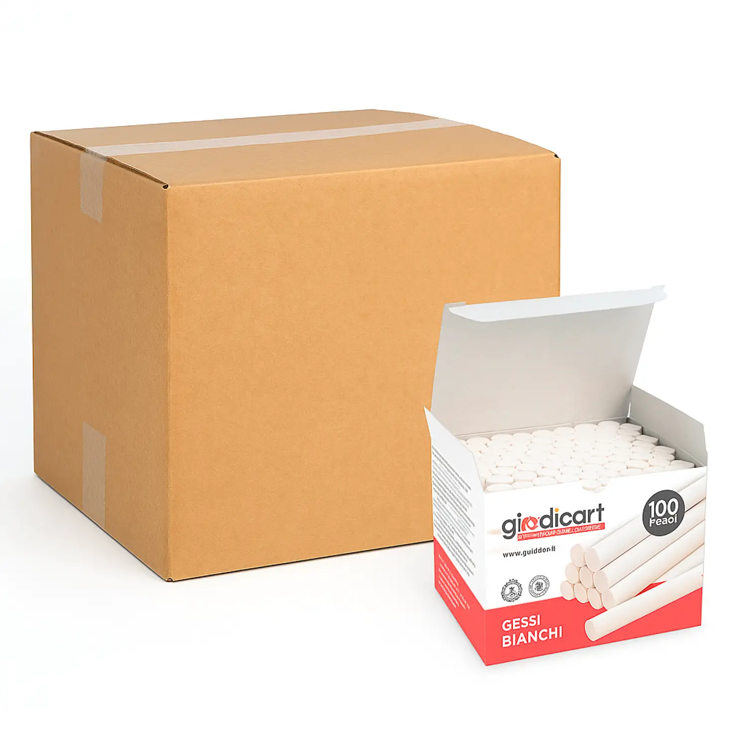 Gessetti Bianchi Tondi Antipolvere GIODICART in Carbonato di Calcio, Anallergici, Perfetti per Lavagna in Ardesia e Attività Creative.